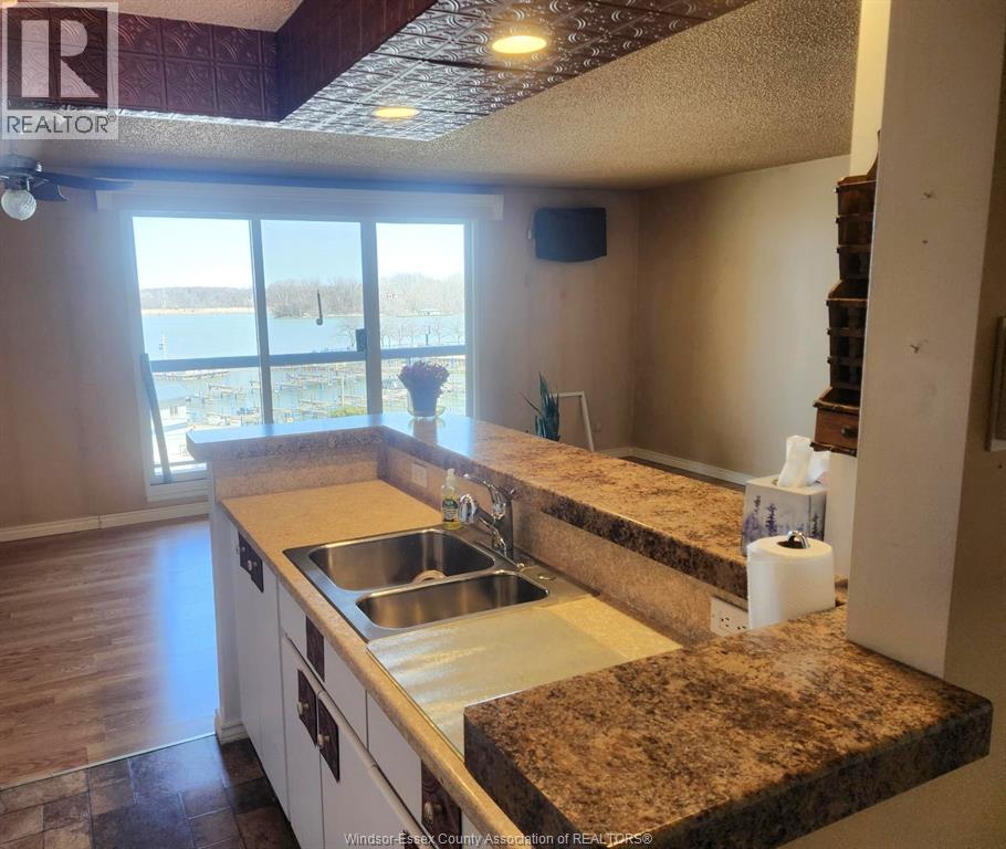 WOW! describes this 2 balcony,1 BR corner unit. Picturesque Nth & Nth East water front views of Lakeview Marina, WYC, Peche Island, Detroit River and Lake St Clair. Impressive from the moment you enter this well cared for open concept design, full of natural light. Kitchen w/breakfast island/bar, Livingroom w/corner electric FP ,custom bathroom with wide double size shower. Great place to enjoy nature, walking trails, rec centre, with many amenities, even pickle ball court. (id:4555)